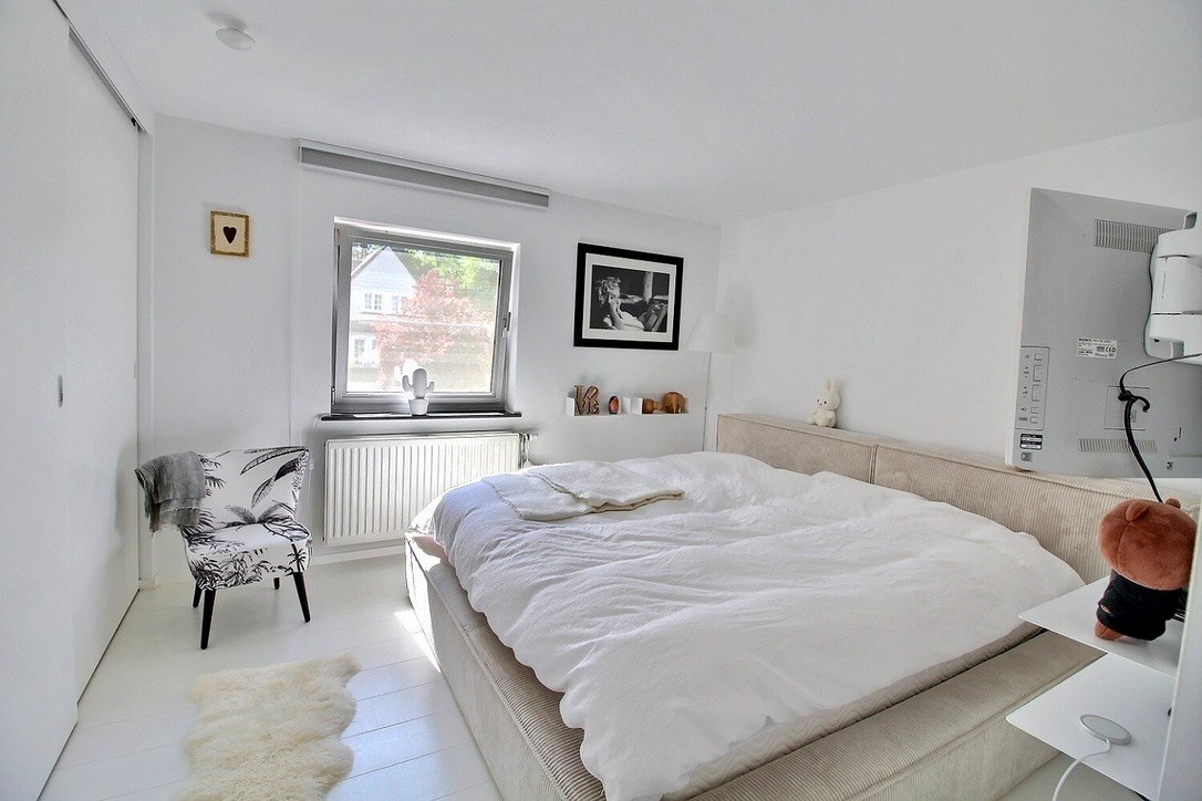 Située dans un quartier résidentiel calme à la frontière de Rhode St Genèse, maison rénovée au style contemporain avec toitures plates. Au rez de chaussée, grand living lumineux avec FO gaz, agrémenté de grandes baies vitrées ouvrant sur 2 terrasses, cuisine entièrement équipée, une chambre avec salle de douche, une vaste buanderie, vestiaire et wc invités. A l'étage: 4 chambres et 2 salles d'eau. A l'extérieur: 2 terrasses, une piscine hors sol (chauffée par une pompe à chaleur), un jardin arboré, un petit bassin décoratif et un bungalow complètent ce bien. Nombreux rangements. 2 emplacements de parking avec nouvelle charge électrique puissante. Chauffage au gaz à condensation. 15 panneaux photovoltaïques sur la toiture exposée sud.
