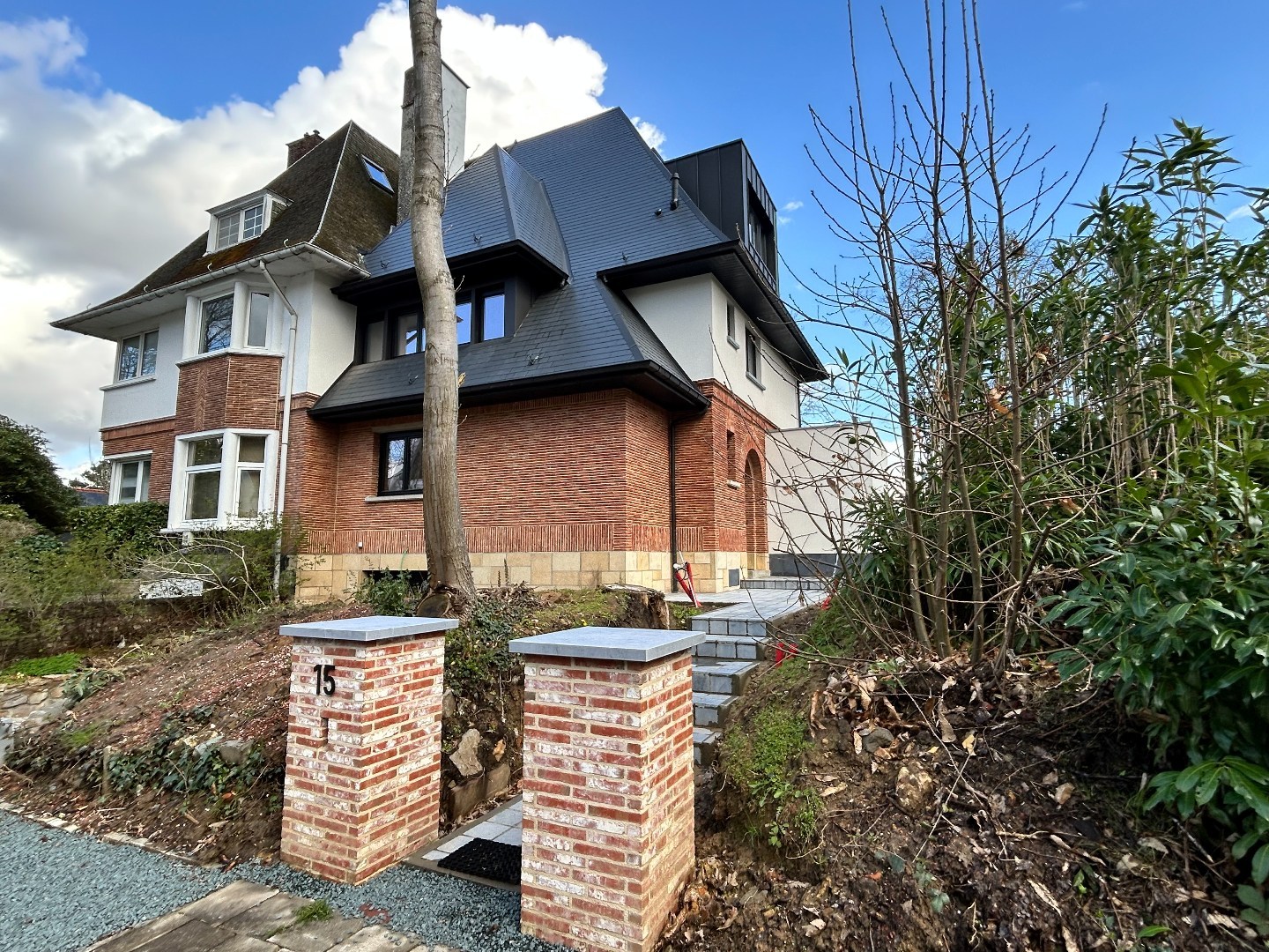 Charmante maison rénovée idéalement située à Rhode-Saint-Genèse, dans le très recherché quartier du Parvis, cette élégante maison 3 façades entièrement rénovée saura vous séduire par son style contemporain, sa luminosité et ses beaux volumes. Dès l’entrée, vous découvrez un hall accueillant menant vers un spacieux living composé d’un salon chaleureux et d’une salle à manger conviviale, ouvert sur une cuisine américaine super équipée – parfaite pour recevoir et partager de beaux moments en famille ou entre amis. À l’étage, le hall de nuit dessert trois chambres confortables (±11 m², 14 m², 15 m²), ainsi qu’une salle de douche moderne et un WC séparé. Le deuxième étage est entièrement dédié à une superbe suite parentale avec sa salle de bain privative, offrant un véritable espace de tranquillité. Le bien dispose également de caves pratiques et d’un garage. À l’extérieur, vous profiterez d’une grande terrasse donnant sur un vaste jardin orienté sud-ouest, idéal pour profiter du soleil tout au long de la journée. Le jardin reste à aménager selon vos envies, laissant libre cours à vos projets paysagers. Un bien coup de cœur, au goût du jour, bénéficiant d’une situation idéale à proximité immédiate des commerces, écoles et transports.