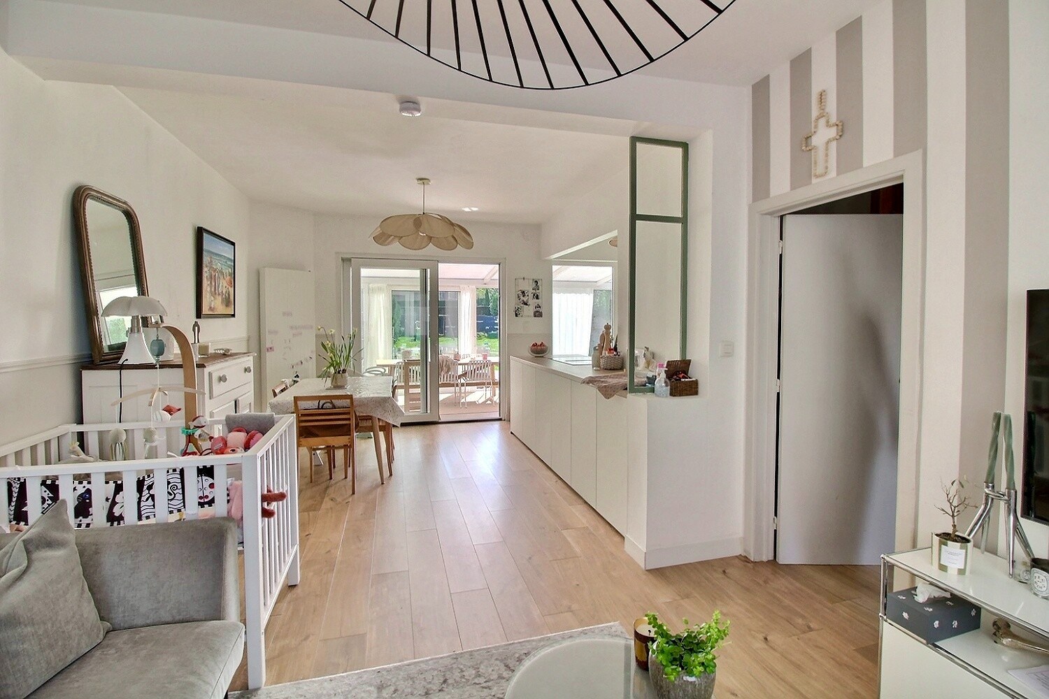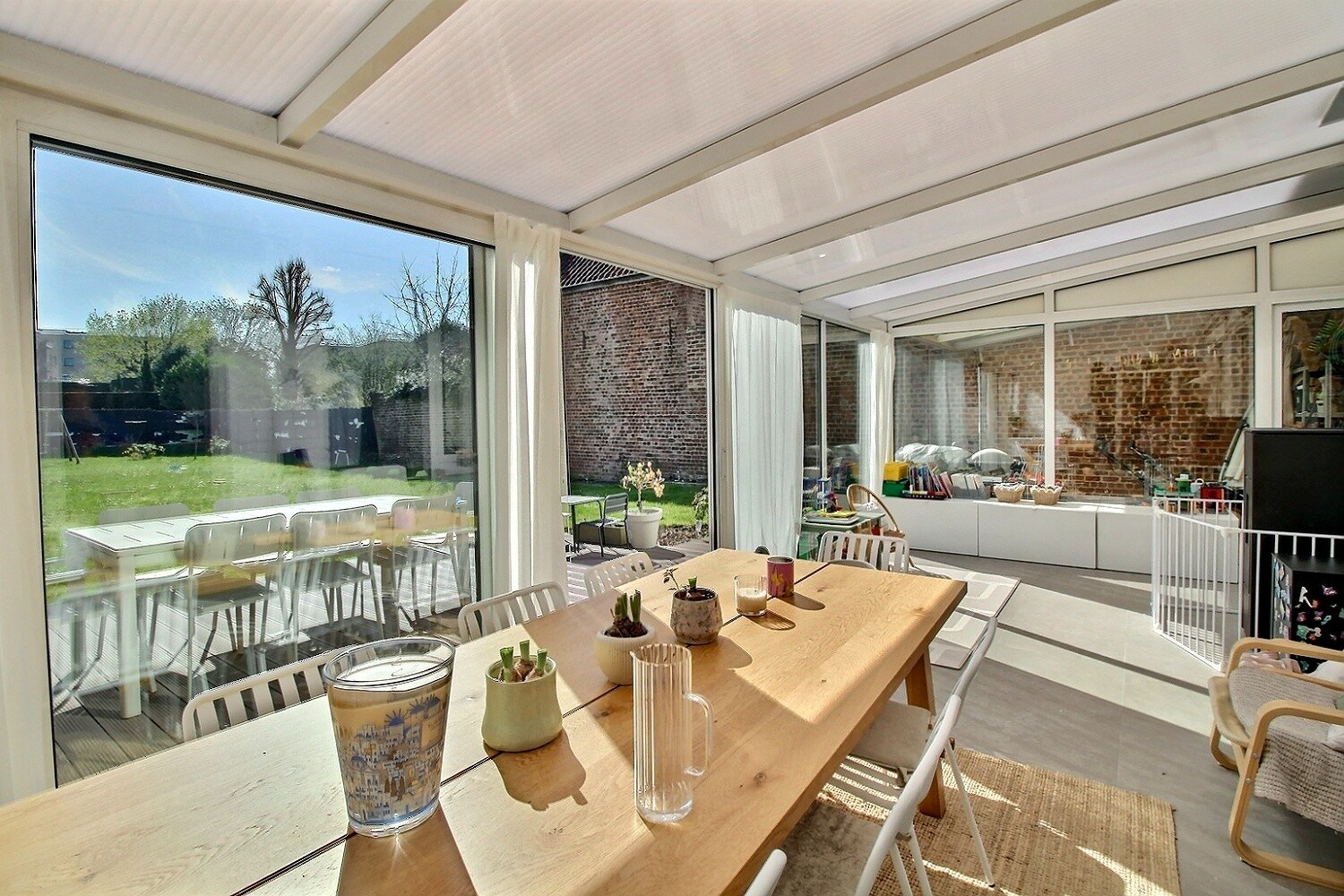 Charmante maison entièrement rénovée idéalement située à proximité du centre et de la gare de Rhode-Saint-Genèse, dans un environnement recherché proche des transports, commerces et écoles. Elle s’ouvre sur un hall d’entrée accueillant menant à un lumineux living composé d’un salon et d’une salle à manger, ainsi qu’à une cuisine américaine ouverte. Une agréable véranda chauffée, équipée d’un poêle à pellets, prolonge les espaces de vie et offre une belle vue sur le jardin. Au premier étage, le hall de nuit dessert trois chambres à coucher, une salle de bain ainsi qu’une superbe suite parentale avec salle de bain et dressing en enfilade. Le deuxième étage, aménagé sous les combles, accueille une quatrième chambre idéale pour un enfant, un bureau ou une salle de loisirs. La maison dispose également de caves et d’un très grand garage, offrant un confort de rangement optimal. À l’extérieur, vous profiterez d’un magnifique jardin orienté plein sud, parfait pour les moments de détente. Un bien coup de cœur, prêt à accueillir une famille à la recherche de confort, d’espace et de tranquillité. Infos et visites : 0475 511 618